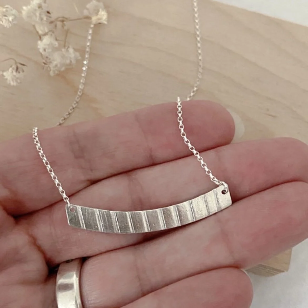 • All of my items are made from 960 sterling silver metal clay. I condition and shape the clay, fire it in the kiln and finish them to a brushed finish.